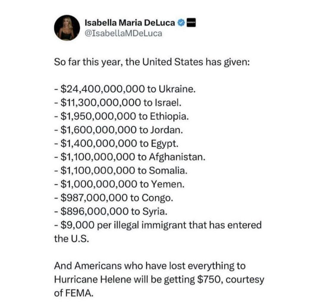 750 đô là là là tất cả những gì mà họ được nhận khi đã mất tất cả sau cơn bão HELEN, so với hàng tỷ đô cho Ukr, Israel...