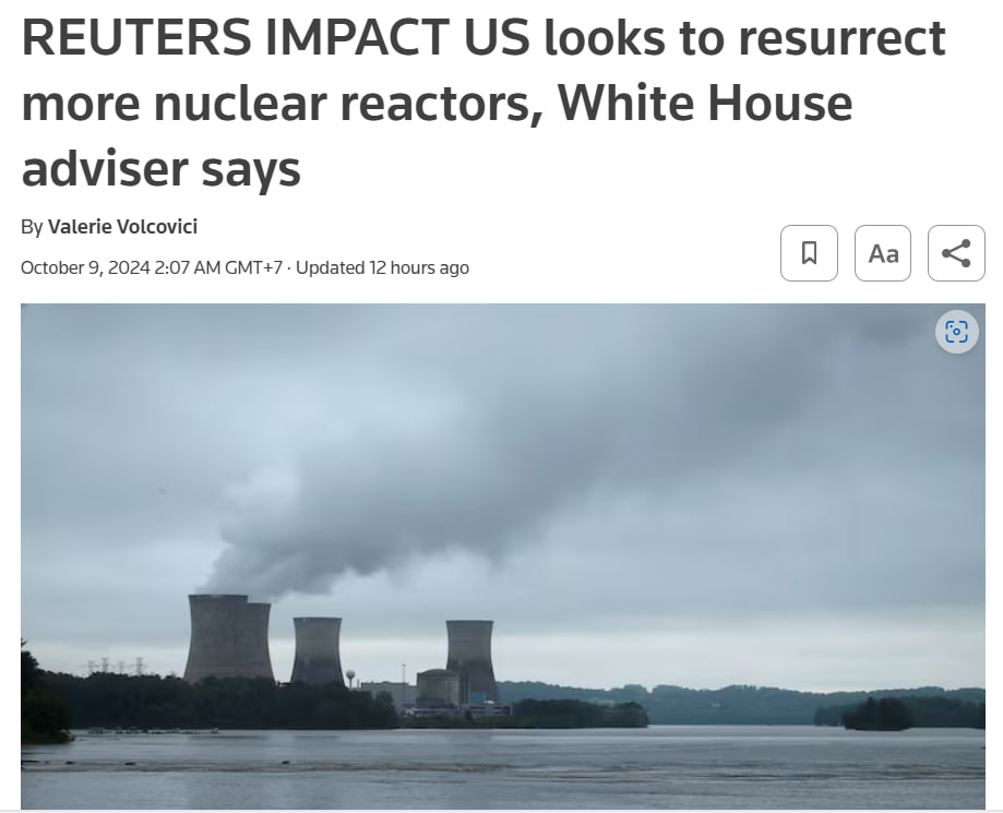 Cố vấn Nhà Trắng cho biết Hoa Kỳ đang tìm cách khôi phục thêm nhiều lò phản ứng hạt nhân