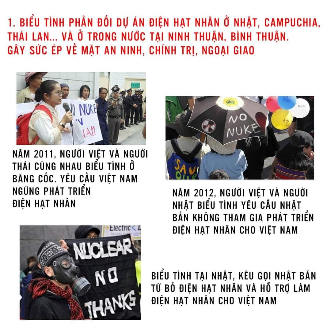 Từ năm 2010 đến năm 2016, có rất nhiều cuộc biểu tình ở Nhật, Campuchia, Thái Lan và đặc biệt là Việt Nam... với sự tham gia của báo chí nước ngoài, các "chí sỹ yêu nước", kiều bào và quần chúng... phản đối Việt Nam xây dựng nhà máy điện hạt nhân. Ở VN có 1 số "chí sỹ yêu nước" cầm đầu là giáo sư Nguyễn Thế Hùng, tiến sỹ Nguyễn Xuân Diện, kỹ sư Nguyễn Hùng ở Úc... liên tục gửi bản kiến nghị cho các cơ quan chính phủ VN, Nhật Bản.