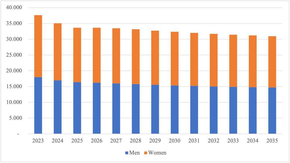 ▪️ Nếu tốc độ phục hồi TFR sau chiến tranh khiêm tốn như bà Libanova lo ngại + TFR vẫn ở mức ~1,4 thay vì lãnh thổ lành mạnh hơn như 1,6-1,7 thì sự suy giảm nhân khẩu học thảm khốc của Ukraine về cơ bản chắc chắn sẽ tiếp tục.