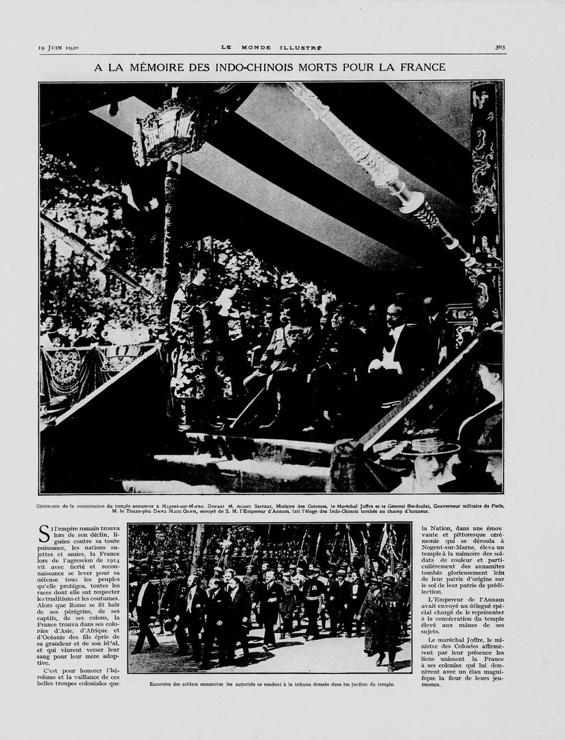 Tin tức về lễ khánh thành Nghĩa sĩ miếu (Temple ᴅu Souvenir Indochinois) đăng trên tờ Le Monde illustré, số ra ngày 19/06/1920