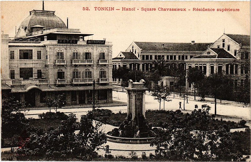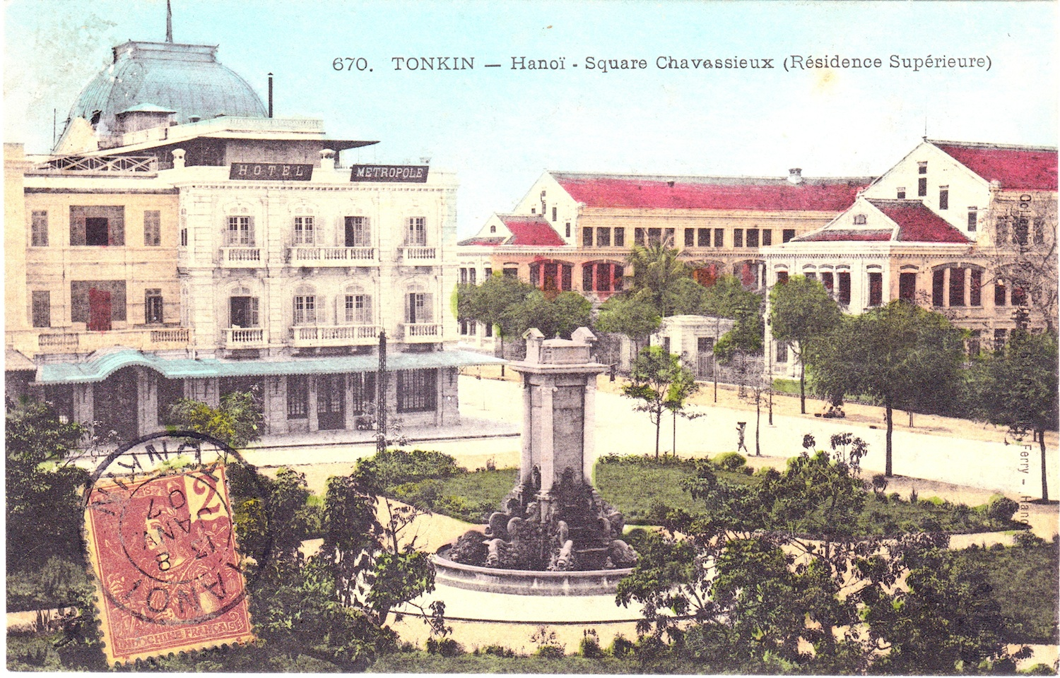 Quảng trường Chavassieux (tên thời Pháp thuộc của Vườn hoa Diên Hồng) có diện tích 4488 mét vuông, được người Pháp khởi công và khánh thành vào năm 1901, với bố cục vườn hoa tam giác và một đài phun nước nằm ngay trung tâm. Vị trí đài phun nước nằm đối diện với dinh Thống sứ Bắc Kì (Bắc Bộ phủ, nay là Nhà khách Chính phủ tại số 12 Ngô Quyền, Hoàn Kiếm) và giới hạn bởi các đại lộ Henri Rivière (phố Ngô Quyền ngày nay), Courbet (phố Lý Thái Tổ) và phố Chavassieux (phố Lê Thạch).