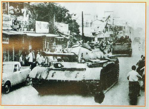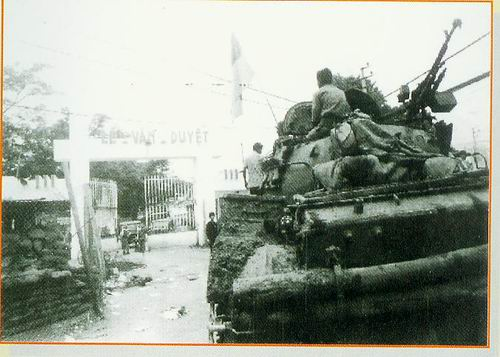 Trung đoàn 2 cùng xe tăng tiến qua Ngã tư Bảy Hiền
