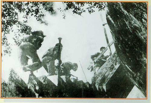 Các chiến sỹ trung đoàn 1 chiếm điểm cao tháp nước trong trại Lê Văn Duyệt ngày 30.04.1975