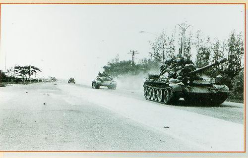 Xe tăng cùng trong đội hình sư đoàn tiến về giải phóng Phnom Penh năm 1979