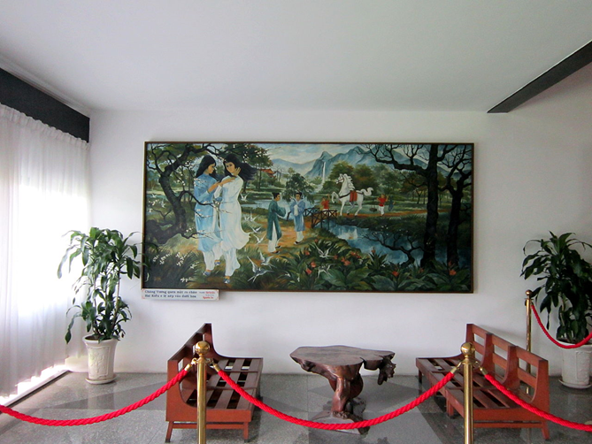 Tranh miêu tả cảnh chị em Thúy Kiều gặp Kim Trọng trong ngày Tết Thanh minh của họa sĩ Lê Chánh, treo trong dinh Độc Lập cũ.