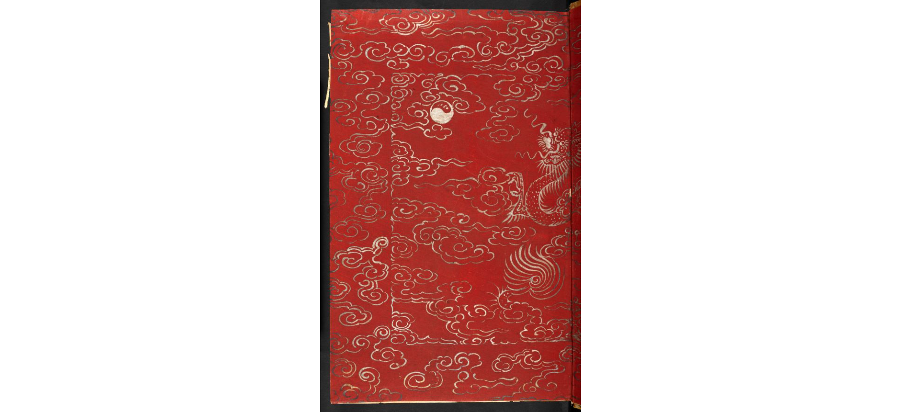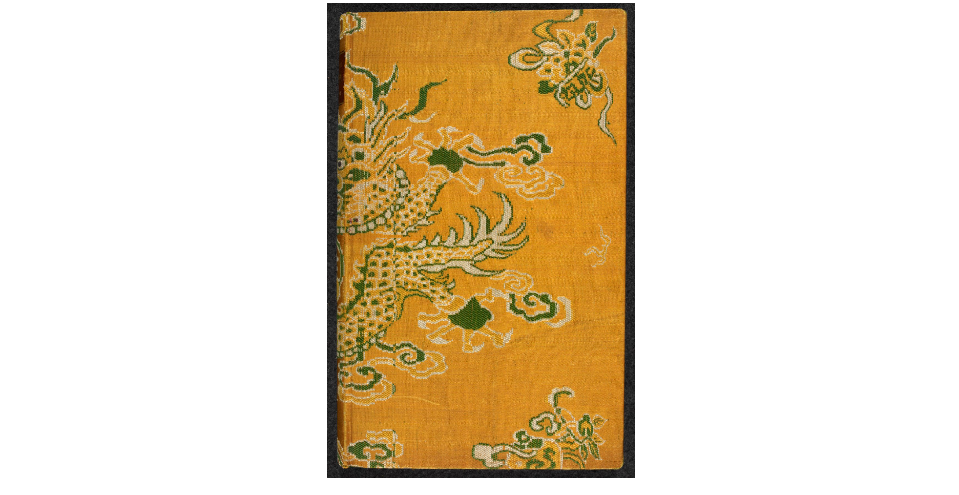 Đây là bản của Hoàng gia triều Nguyễn với đặc điểm nổi bật đầu tiên là bìa sách. Bìa là hình rồng dệt, mặt rồng ngang, thân uốn khúc, chân năm móng bấu vào mây ngũ sắc, trang trí xung quanh nền là bát bửu. Tính chất của họa tiết rồng năm móng, chứng tỏ đây là bản của nhà vua “ngự lãm”. Có lẽ cuốn cổ thư này đã bị thất tán sau sự kiện thất thủ Huế 1885 khi mà quân Pháp đã tràn vào xâm chiếm Kinh đô, vào Hoàng thành và lấy đi không ít của cải cùng nhiều báu vật của triều đình Huế.