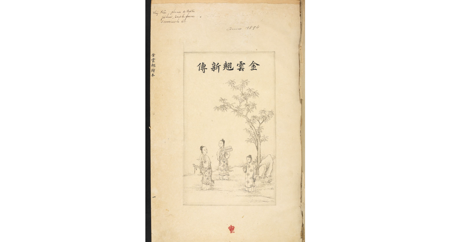 nửa sau thế kỷ 19,Truyện Kiều bản Hán Việt của Nguyễn Du, có chú giải của Paul Pelliot, nhà Hán học người Pháp (1898-1945), trên một số trang. Minh họa: các tình tiết trong truyện được miêu tả trên mỗi trang
