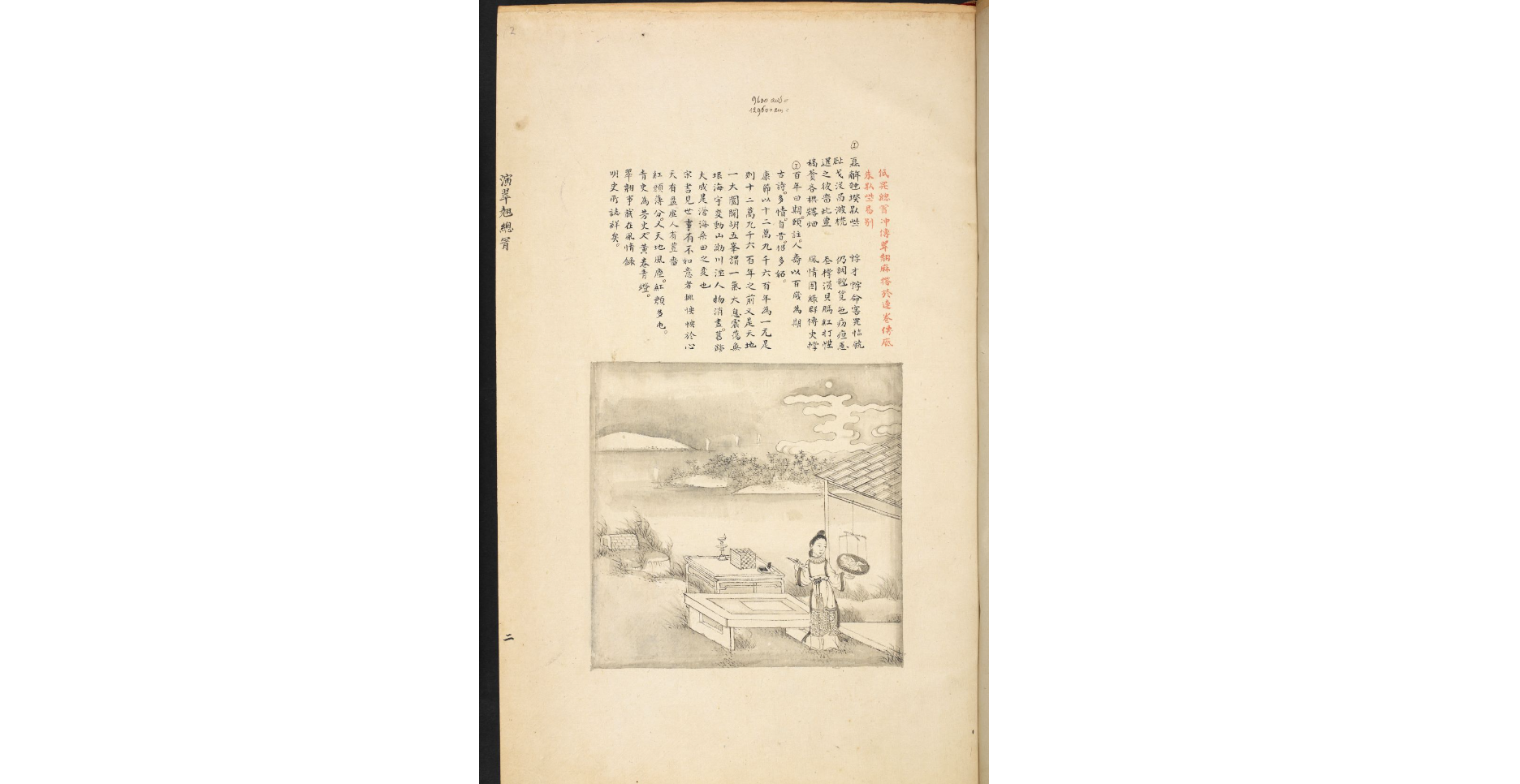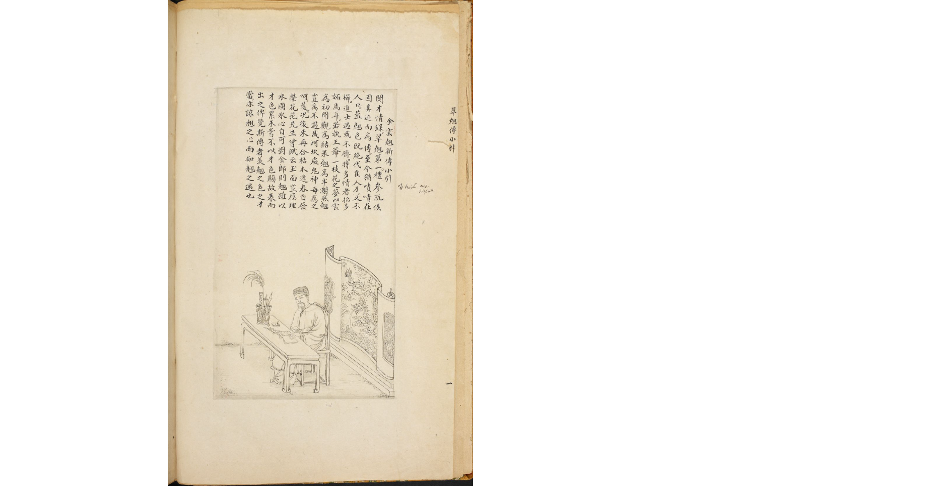 "second half of 19th century, The Tale of Kieu (Truyện Kiều) in Sino-Vietnamese by Nguyễn Du, with annotations of Paul Pelliot, a French Sinologist (1898-1945), on some pages.Illustrations: incidents from the story depicted on each folio"