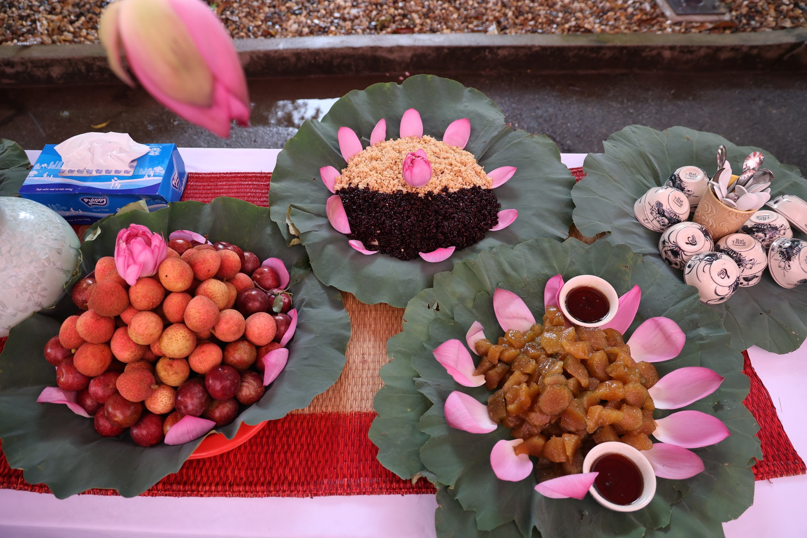 Ăn bánh gio, rượu nếp, hoa quả mùa hè để giết sâu bọ trong ngày Tết Đoan Ngọ ở Hoàng thành Thăng Long - Ảnh: T.ĐIỂU