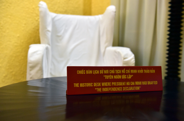 Chiếc bàn lịch sử, nơi Chủ tịch Hồ Chí Minh khởi thảo Tuyên ngôn Độc lập, khai sinh nước Việt Nam Dân chủ Cộng hòa, nhà nước dân chủ nhân dân đầu tiên ở Đông Nam Á.
