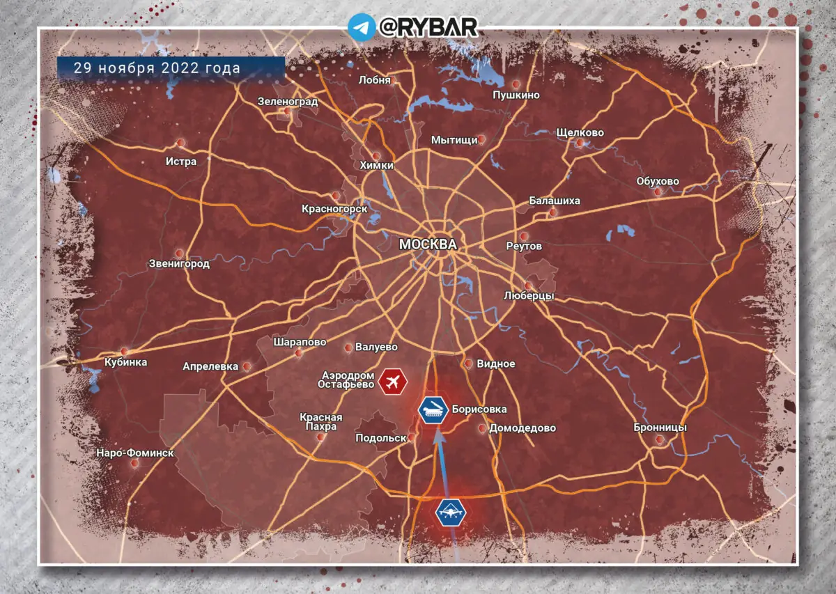 Đội hình Ukraine lại sử dụng máy bay không người lái để tấn công Matxcơva. Các xạ thủ phòng không Nga đã chặn một máy bay không người lái gần làng Borisovka, quận thành thị Podolsk. Theo dữ liệu sơ bộ, không có thiệt hại hay thương vong tại địa điểm nơi mảnh vỡ rơi xuống. Cách khu vực xảy ra sự cố vài km là sân bay chung Ostafyevo nằm gần Matxcơva. Ngoài ra, các vật thể ở Matxcơva cũng có thể trở thành mục tiêu của kẻ thù. Đồng thời, trong những ngày gần đây, Lực lượng vũ trang Ukraine đã gia tăng số lượng các cuộc tấn công vào thủ đô của Nga. Nỗ lực trước đó diễn ra vào Chủ nhật, khi hệ thống phòng không bắn hạ 5 máy bay không người lái trên khu vực Matxcơva.