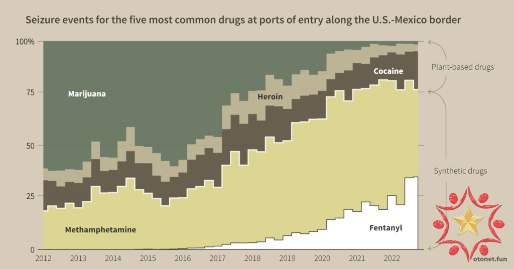 Các vụ bắt giữ fentanyl tại các cảng nhập cảnh ở biên giới phía nam đã tăng lên 600 kg vào năm 2018 trước khi tăng lên 7.200 kg vào năm 2022, kéo dài mức tăng đáng kể bắt đầu trong đại dịch COVID-19. Theo phân tích của Reuters, so với cùng kỳ, lượng ma túy bị bắt giữ đã giảm hơn 80% so với hơn 2.000 kg.