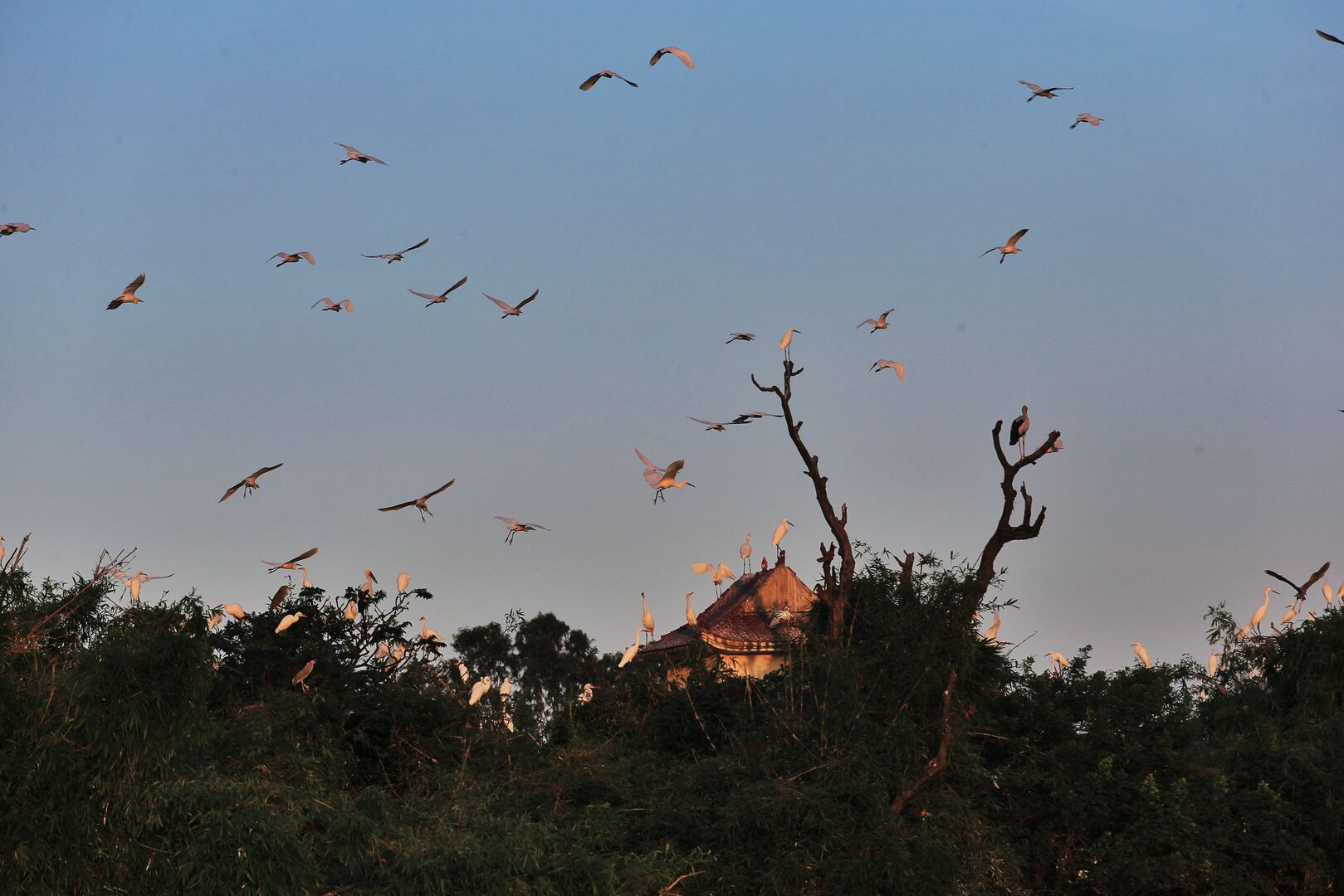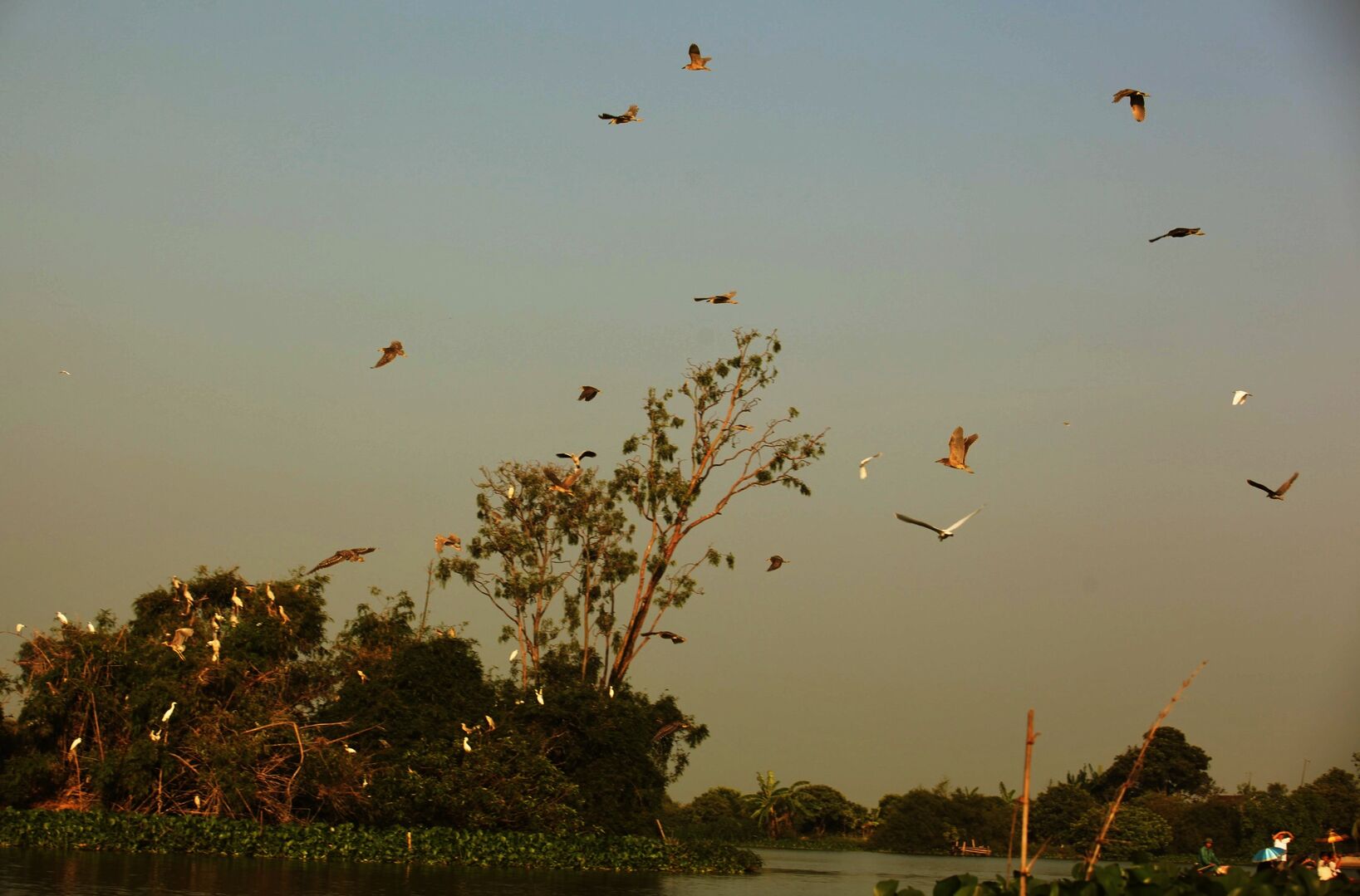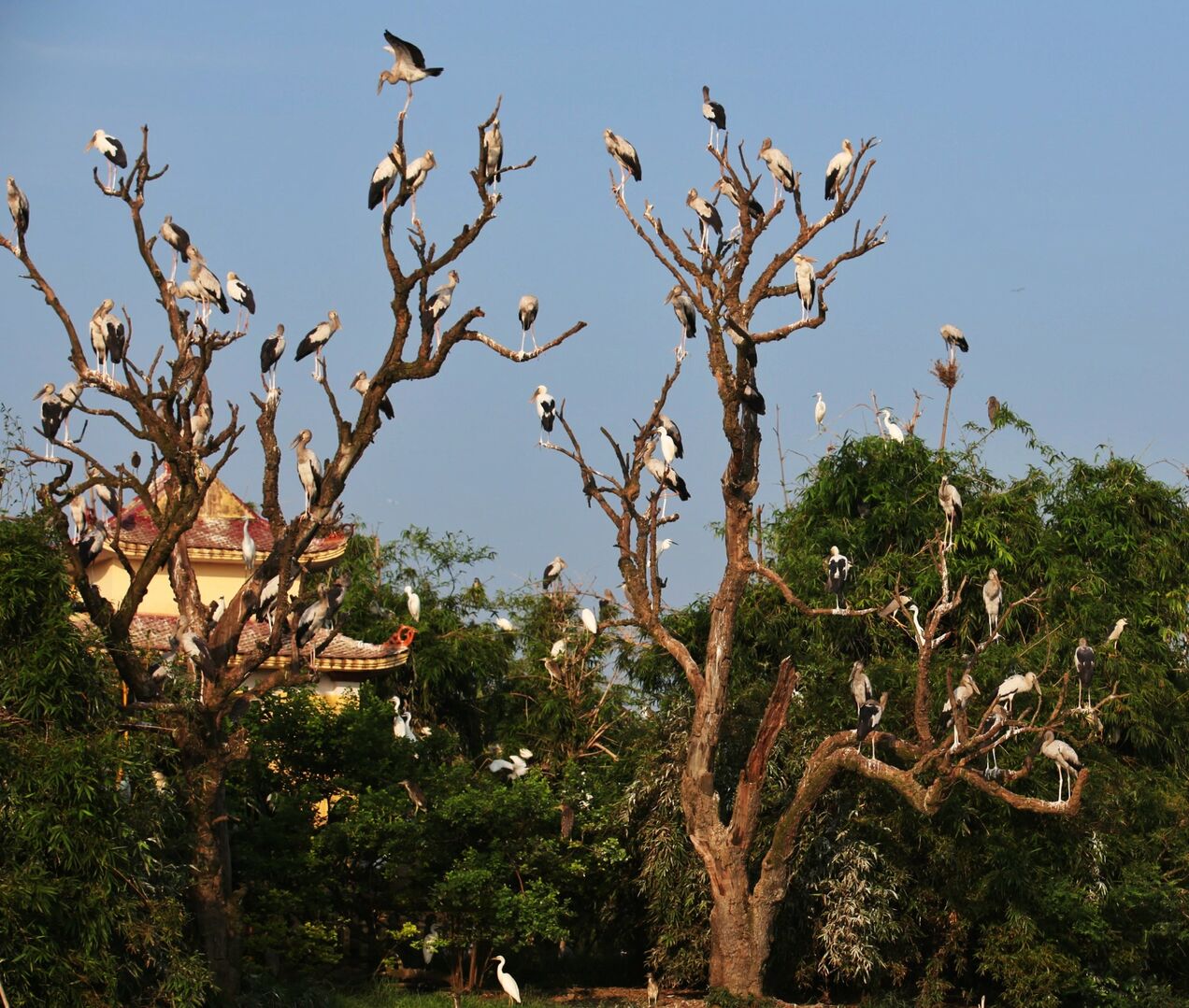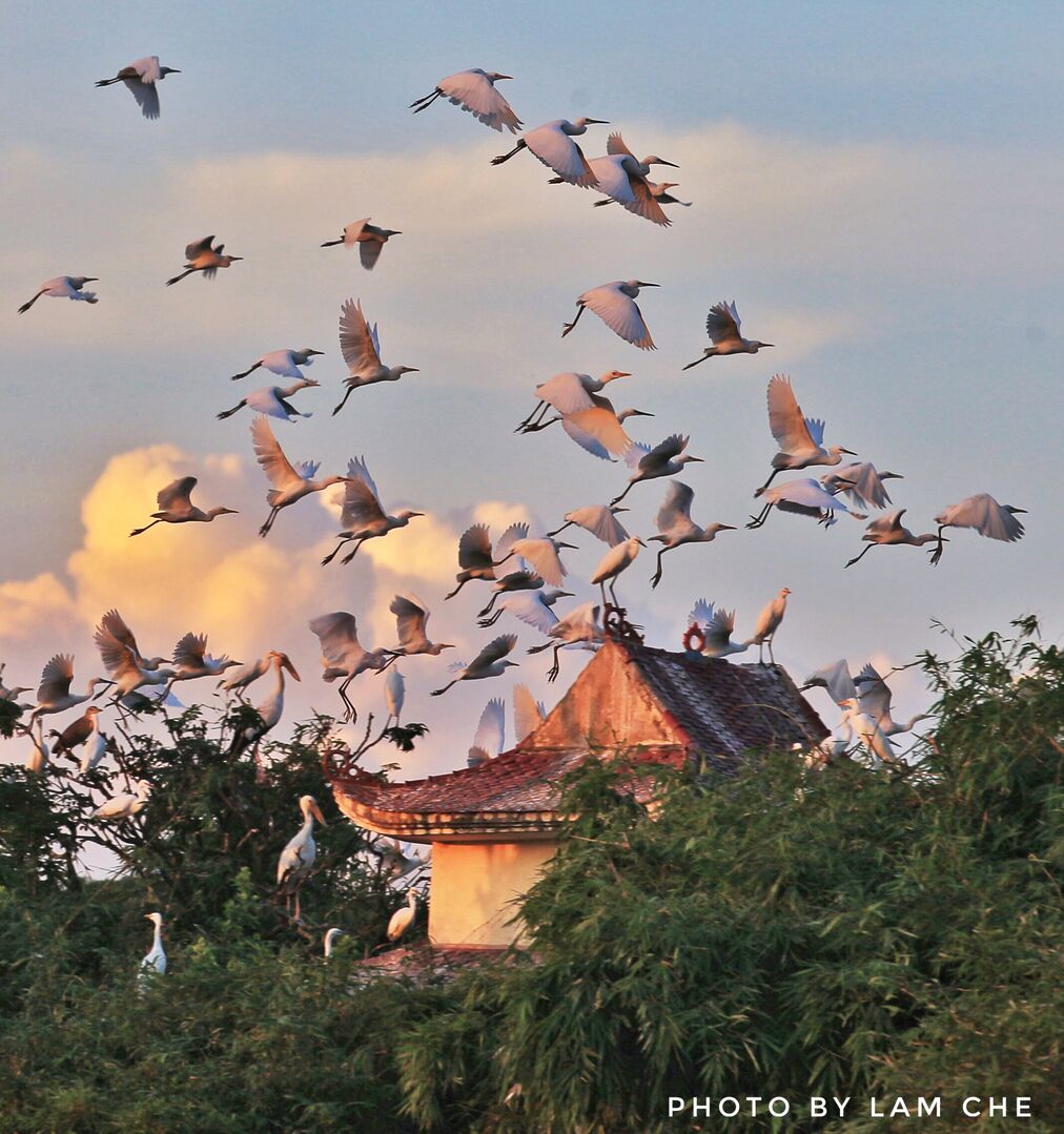 các rặng tre và là nơi cư trú của hàng vạn con chim.Chính quyền và nhân dân ở đây đã không những không đánh bắt mà còn làm nhiều việc để bảo vệ đàn chim.Hàng năm,nhất là vào những ngày cuối thu ,cứ vào lúc chiều tối đàn chim lại kéo nhau về trú ngụ trên các rặng tre,hàng ngàn,hàng vạn con bay rợp trời tạo nên một bức tranh đẹp,yên bình và dân dã: