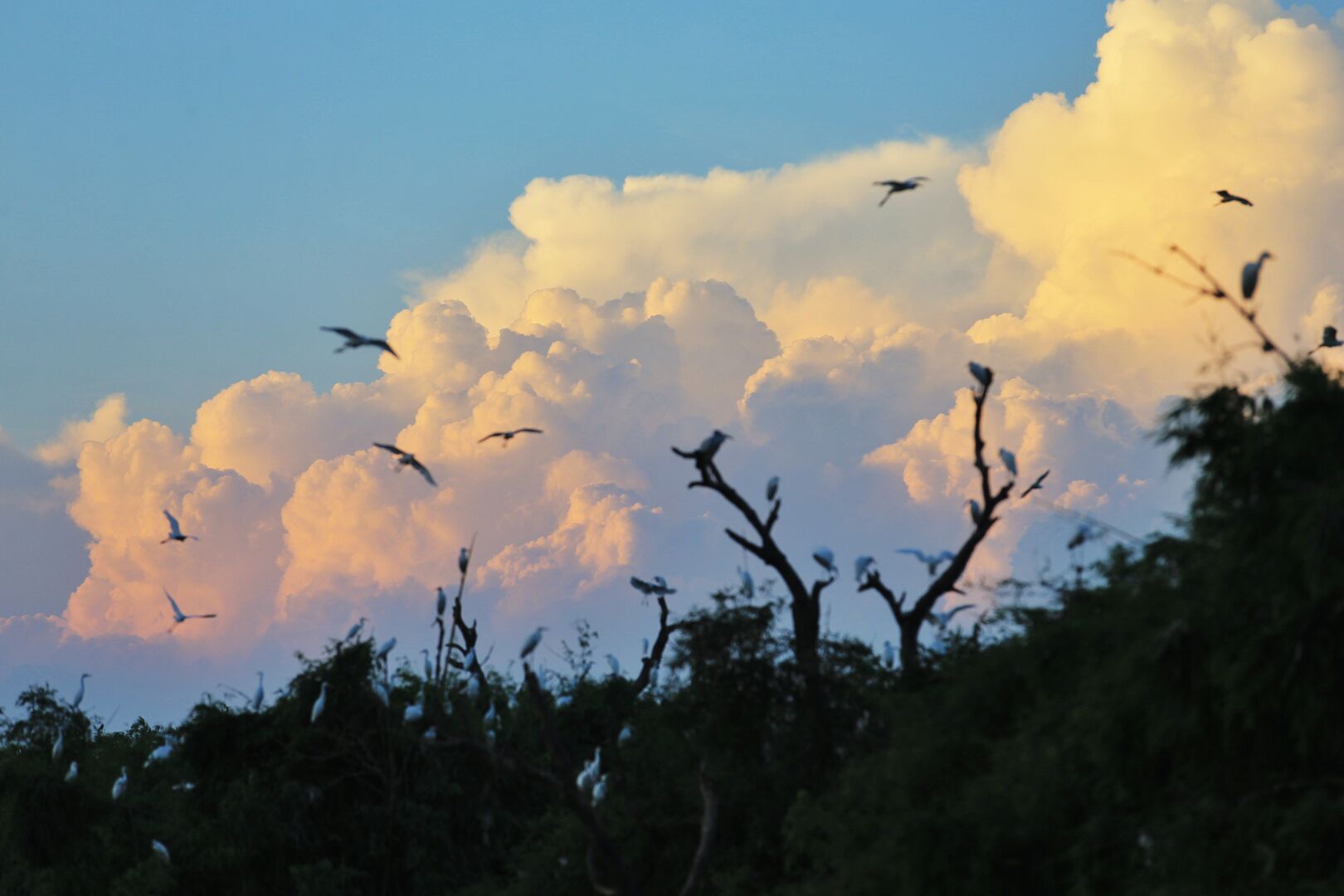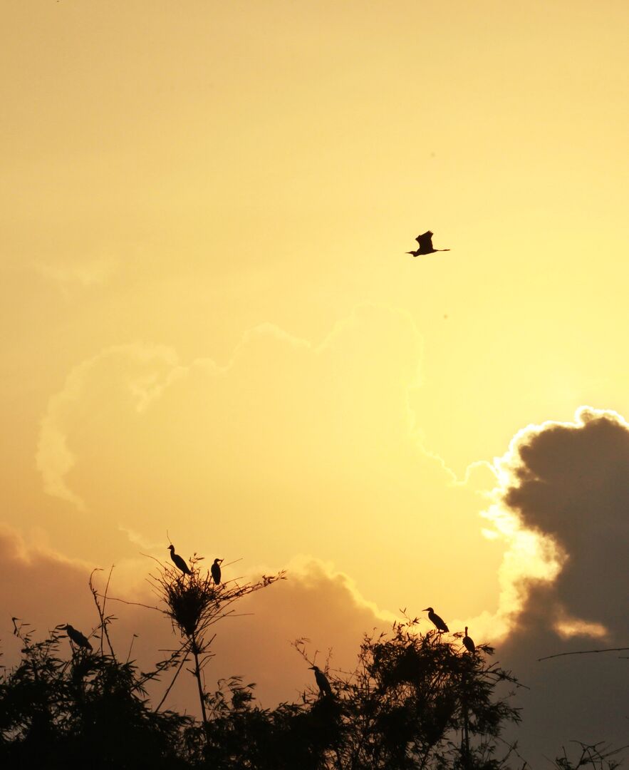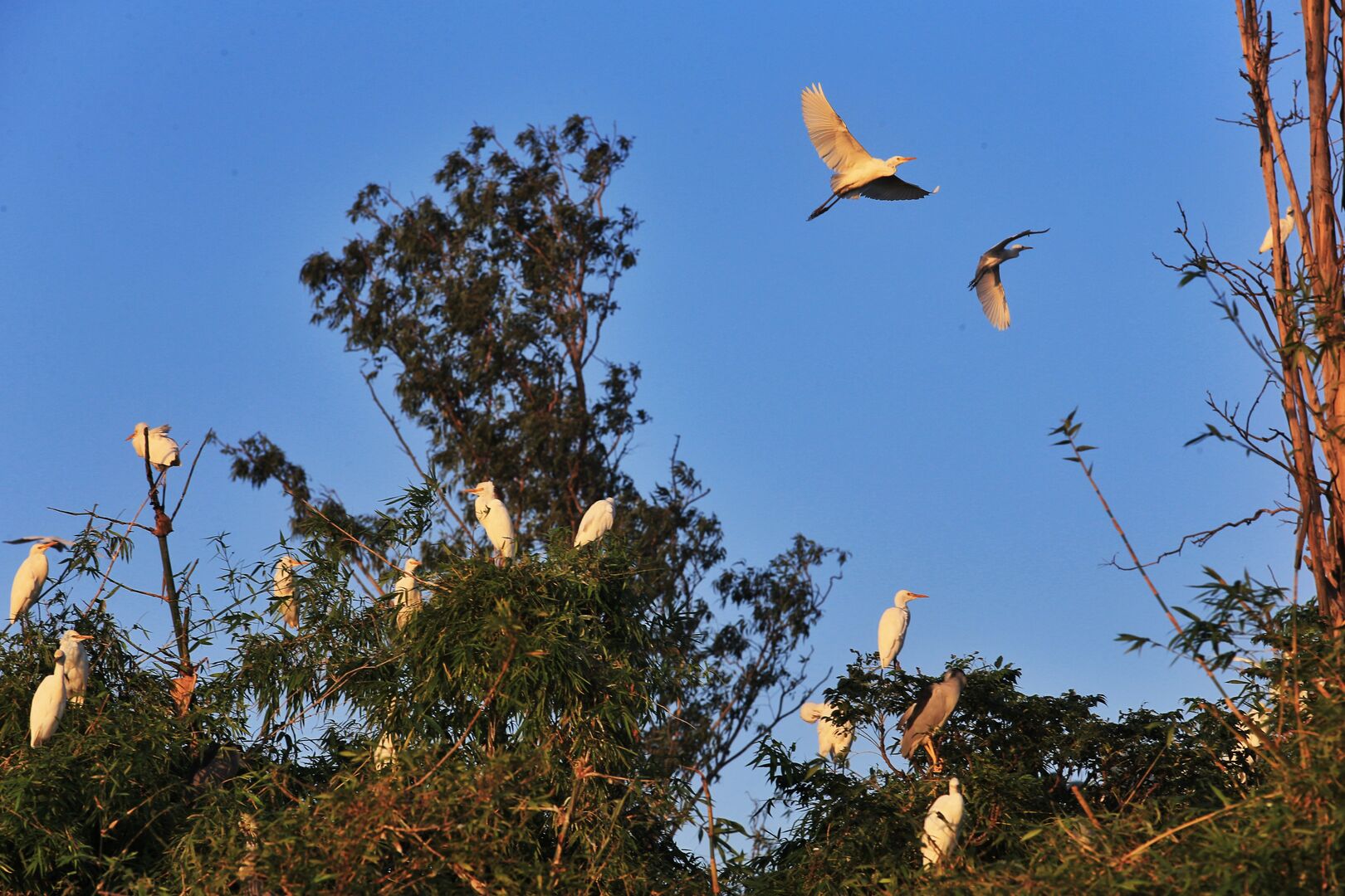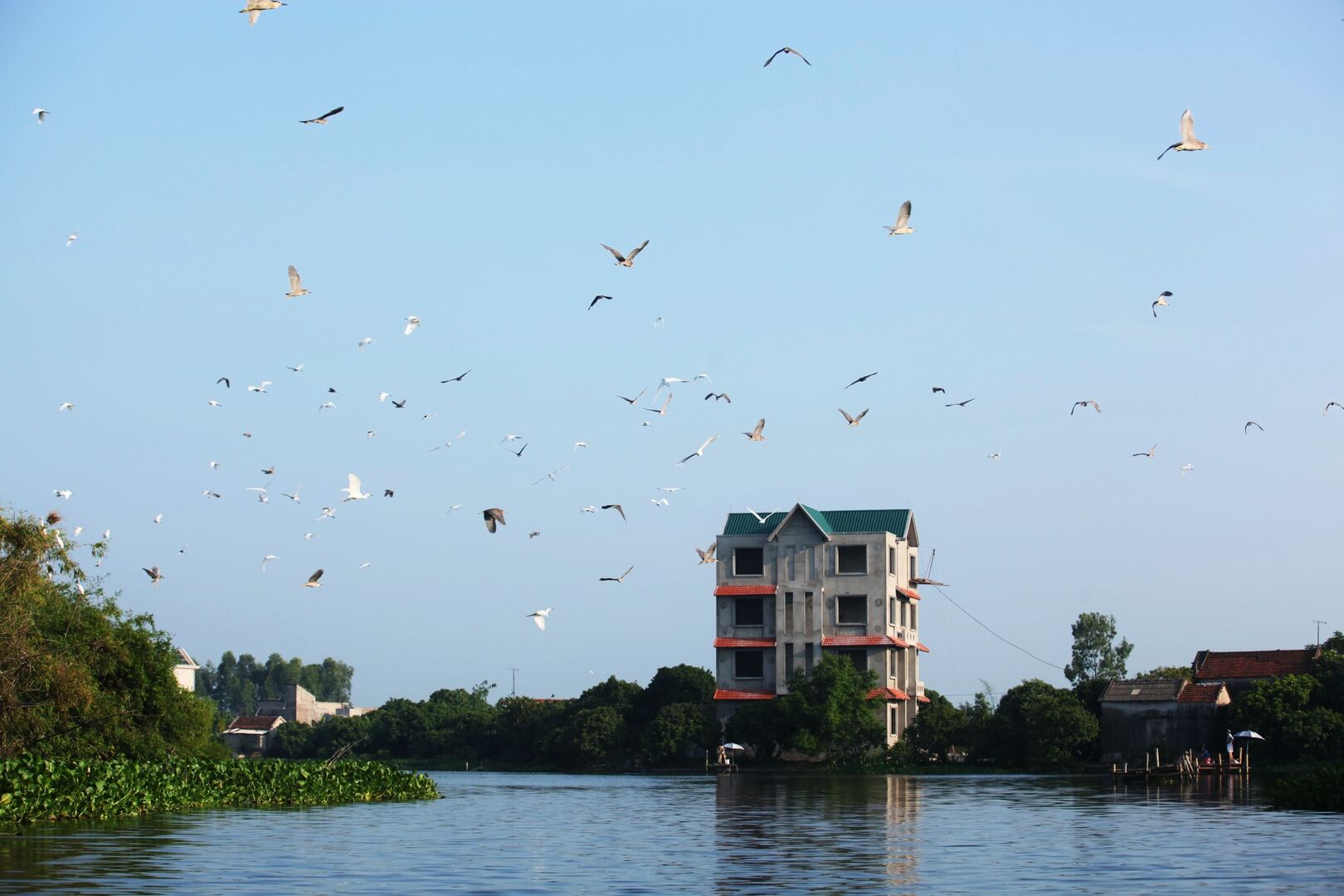 các rặng tre và là nơi cư trú của hàng vạn con chim.Chính quyền và nhân dân ở đây đã không những không đánh bắt mà còn làm nhiều việc để bảo vệ đàn chim.Hàng năm,nhất là vào những ngày cuối thu ,cứ vào lúc chiều tối đàn chim lại kéo nhau về trú ngụ trên các rặng tre,hàng ngàn,hàng vạn con bay rợp trời tạo nên một bức tranh đẹp,yên bình và dân dã: