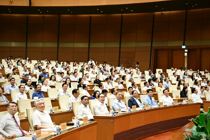 | Các đại biểu tham dự hội nghị tại Phòng họp Diên Hồng (Nhà Quốc hội). |