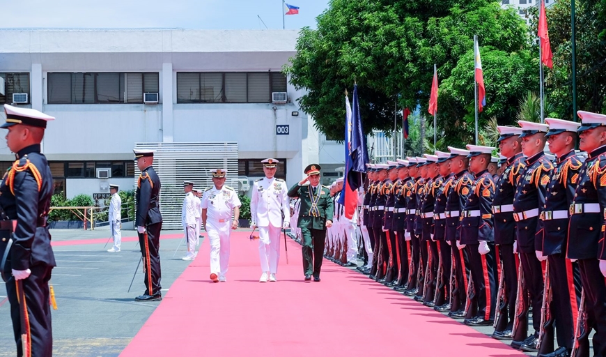 | Đại tướng Phan Văn Giang và Phó đô đốc Toribio Dulinayan Adaci Jr., Tư lệnh Hải quân Philippines duyệt đội danh dự Hải quân Philippines. |