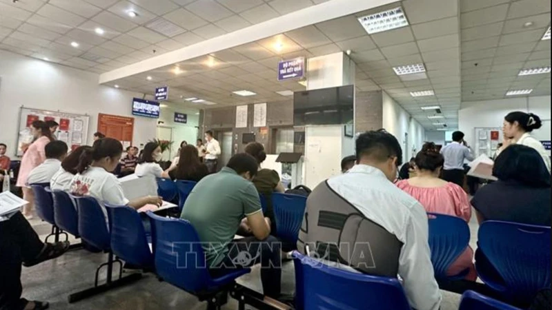 | Phiên đấu giá đất tại Hoài Đức. (Ảnh: TTXVN) |