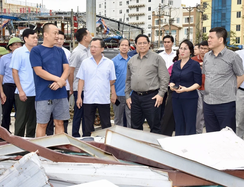 Thăm hỏi một số cơ sở kinh doanh ở thành phố Hạ Long, tỉnh Quảng Ninh bị bão làm sập, ân cần hỏi thăm người dân Thủ tướng chia sẻ, mong các cơ sở sớm ổn định, khôi phục kinh doanh; sớm cùng bàn với chính quyền địa phương nghiên cứu các giải pháp hỗ trợ phù hợp, kịp thời.