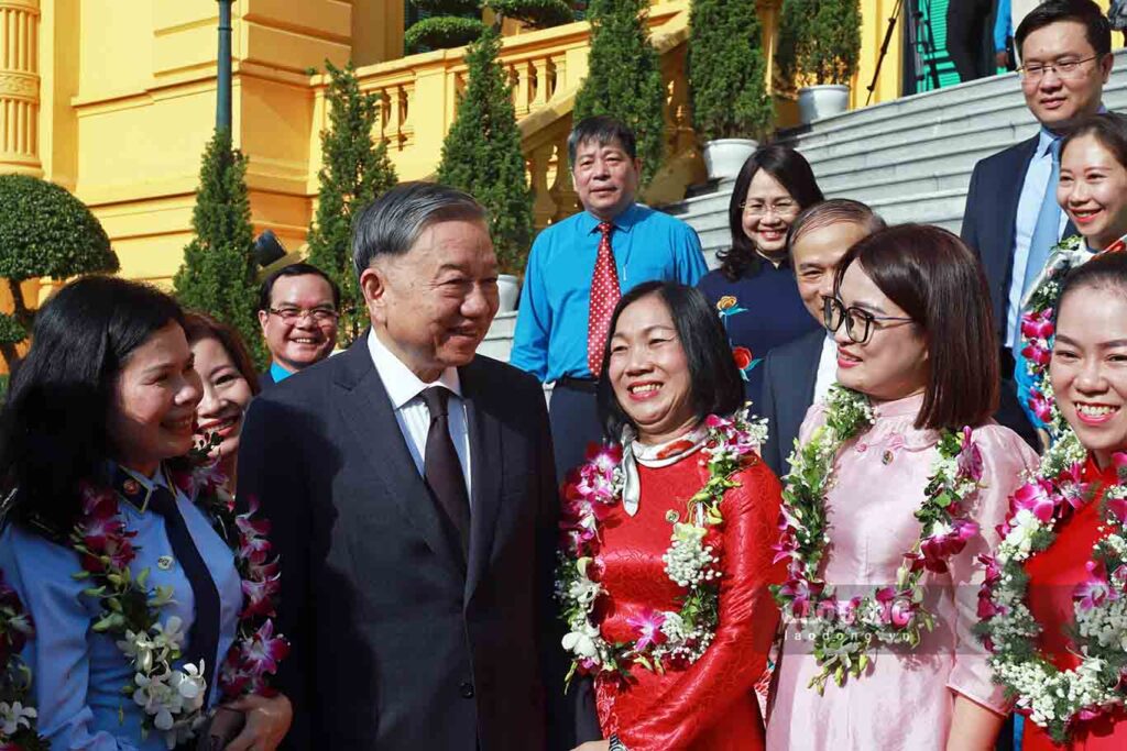 Cuộc gặp diễn ra tại Phủ Chủ tịch, nơi ghi dấu ấn sâu đậm cuộc đời hoạt động cách mạng sôi nổi của Chủ tịch Hồ Chí Minh.150 gương điển hình “Tham mưu giỏi, phục vụ tốt” vô cùng xúc động được gặp gỡ, báo công với Tổng Bí thư, Chủ tịch nước Tô Lâm.Tổng Bí thư, Chủ tịch nước Tô Lâm chụp ảnh lưu niệm với các đại biểu tại tiền sảnh Phủ Chủ tịch.Để vinh dự được có mặt báo công với Tổng Bí thư, Chủ tịch nước hôm nay, Công đoàn Viên chức Việt Nam và 150 gương điển hình đã trải qua hành trình của những tháng ngày nỗ lực, phấn đấu, tất cả vì lợi ích của nhân dân, vì Đảng quang vinh và dân tộc trường tồn.Đồng chí Ngọ Duy Hiểu, Phó Chủ tịch Tổng Liên đoàn Lao động Việt Nam, Chủ tịch Công đoàn Viên chức Việt Nam báo cáo tóm tắt kết quả phong trào thi đua “Tham mưu giỏi, phục vụ tốt” và thành tích của các gương điển hình được tôn vinh.Sau 5 năm triển khai, phong trào đã thấm sâu đến cơ sở, được đông đảo cán bộ, công chức, viên chức, người lao động hưởng ứng, thực hiện bằng các việc làm cụ thể, thiết thực, hiệu quả ở từng cơ quan, đơn vị.Các đại biểu phát biểu ý kiến tại cuộc gặp mặt.Tổng Bí thư, Chủ tịch nước Tô Lâm phát biểu ý kiến tại cuộc gặp mặt 150 gương điển hình trong phong trào thi đua “Tham mưu giỏi, phục vụ tốt”.Thay mặt lãnh đạo Đảng, Nhà nước, Tổng Bí thư, Chủ tịch nước Tô Lâm nhiệt liệt biểu dương và chúc mừng Công đoàn Viên chức Việt Nam đã tổ chức triển khai thực hiện tốt phong trào. Tổng Bí thư, Chủ tịch nước cũng nhấn mạnh, phong trào “Tham mưu giỏi, phục vụ tốt” đã trở thành chất xúc tác thúc đẩy việc hoàn thành tốt nhiệm vụ chính trị ở từng cơ quan, đơn vị; góp phần nâng cao đạo đức công vụ, xây dựng đội ngũ cán bộ, công chức, viên chức, người lao động thực sự “vừa hồng, vừa chuyên”, đáp ứng yêu cầu nhiệm vụ cách mạng trong giai đoạn mới.Tổng Bí thư, Chủ tịch nước Tô Lâm tặng quà lưu niệm cho các đại biểu.Tổng Bí thư, Chủ tịch nước Tô Lâm chụp ảnh lưu niệm với các đại biểu.