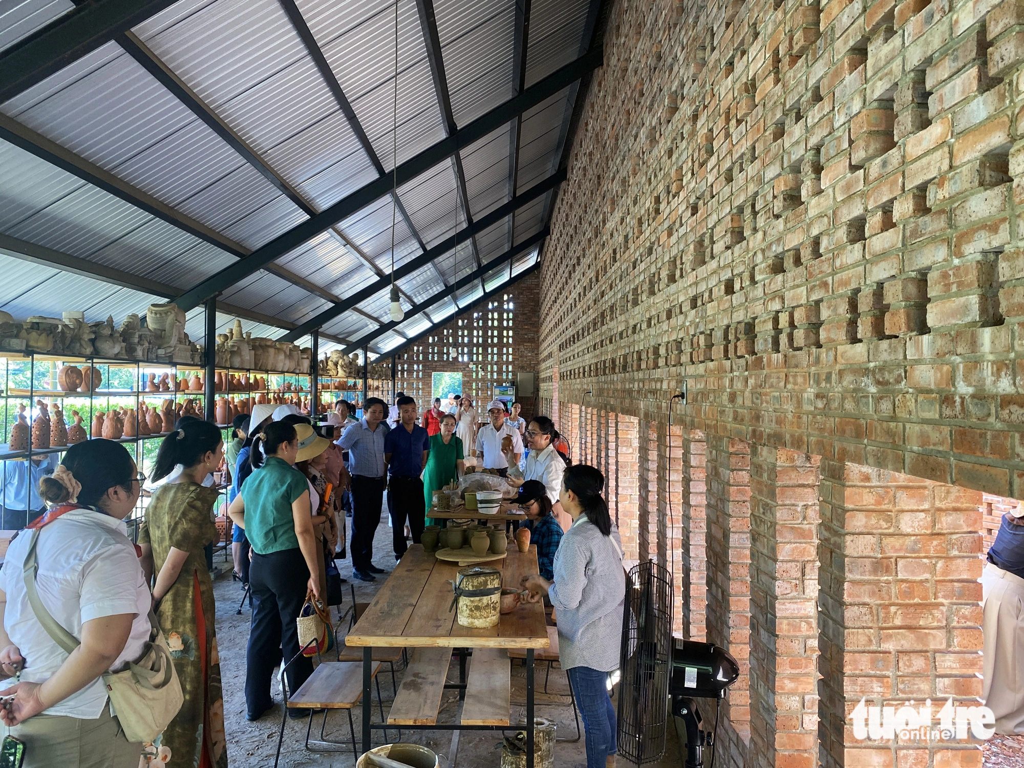 Hằng ngày khách du lịch ghé xưởng đất nung để trải nghiệm quy trình tạo ra các tác phẩm nghệ thuật